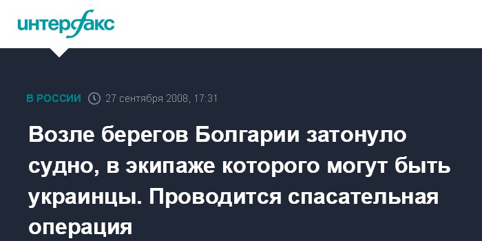 Москва. 27 сентября. INTERFAX.RU - В Болгарии утром в субботу затонуло судно, в составе экипажа которого могут быть граждане Украины.