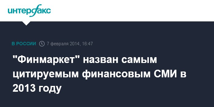 "Финмаркет" назван самым цитируемым финансовым СМИ в 2013 году