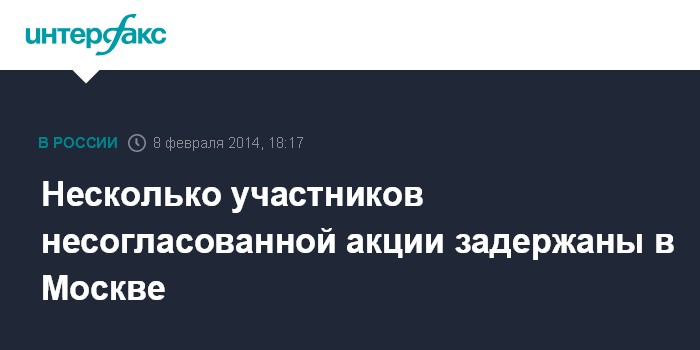 Москва. 8 февраля. INTERFAX.RU - Полиция задержала вечером в субботу несколько человек на несогласованной с мэрией Москвы акции в поддержку телеканала "Дождь".