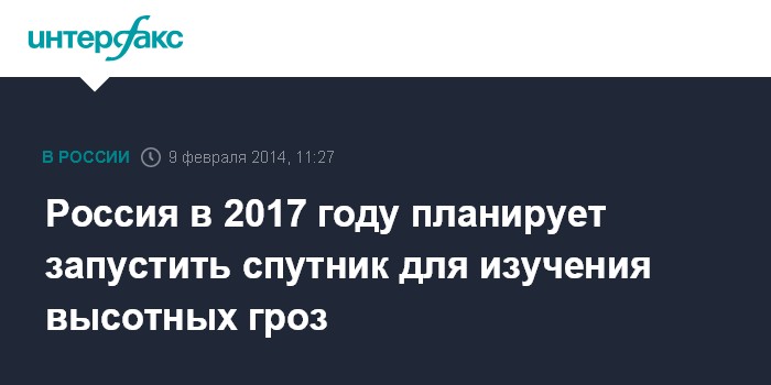 Россия в 2017 году планирует запустить спутник для изучения высотных гроз