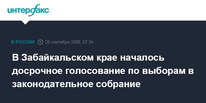 "Досрочное голосование в Забайкальском крае будет проходить с 28 сентября по 8 октября в шести районах", - сообщил агентству "Интерфакс-Сибирь" представитель облизбиркома.
