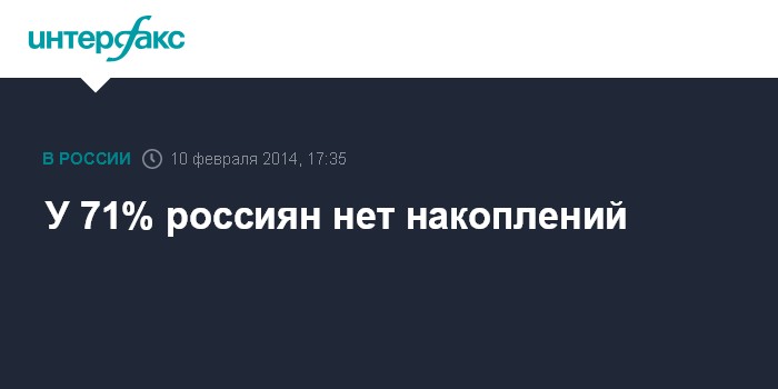 Москва. 10 февраля. INTERFAX.RU - Подавляющее большинство россиян (71%) не имеет сбережений/накоплений, свидетельствуют данные опроса ФОМ.