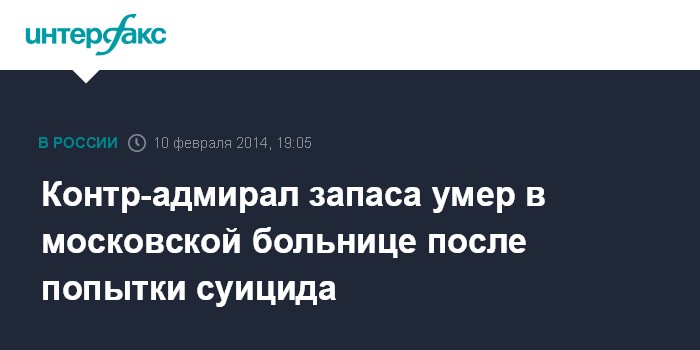 Контр-адмирал запаса умер в московской больнице после попытки суицида
