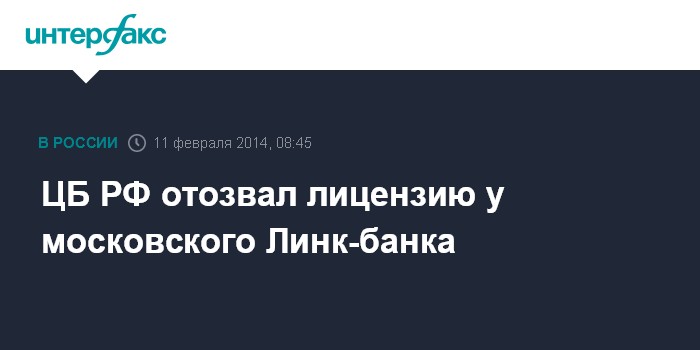 ЦБ РФ отозвал лицензию у московского Линк-банка