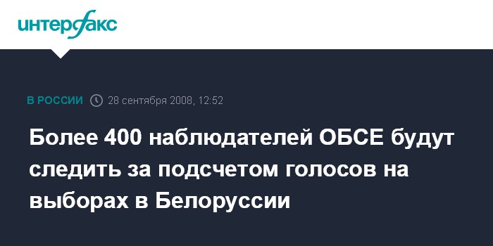 Минск. 28 сентября. INTERFAX.RU - Более 400 наблюдателей от ОБСЕ после закрытия избирательных участков будут следить за подсчетом голосов, сообщил журналистам в воскресенье в Минске директор БДИПЧ ОБСЕ Янез Ленарчич.