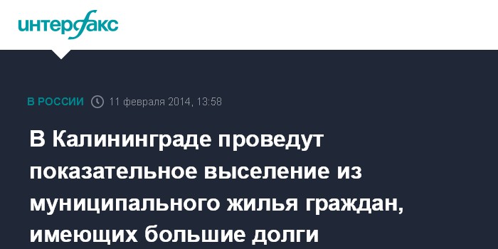 Москва. 11 февраля. INTERFAX.RU - Администрация Калининграда проведет показательное выселение из муниципального жилья граждан, имеющих большие долги за коммунальные услуги.