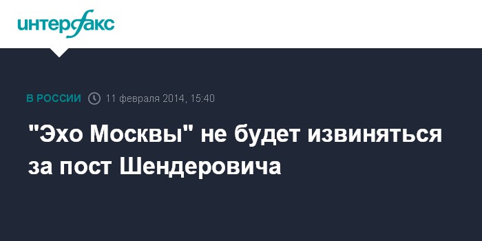 Он добавил, что радиостанция не будет приносить никому извинений, потому что данные высказывания прозвучали не в эфире, а были размещены на сайте в личном блоге Шендеровича. "Мы не осуществляем предварительную цензуру, и господин Шендерович осуществил свое право на выражение свободы мнения в соответствии с Конституцией РФ", - заявил Венедиктов.