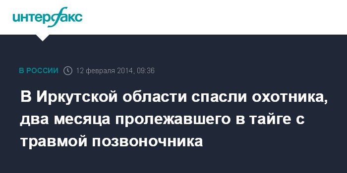 В Иркутской области спасли охотника, два месяца пролежавшего в тайге с травмой позвоночника