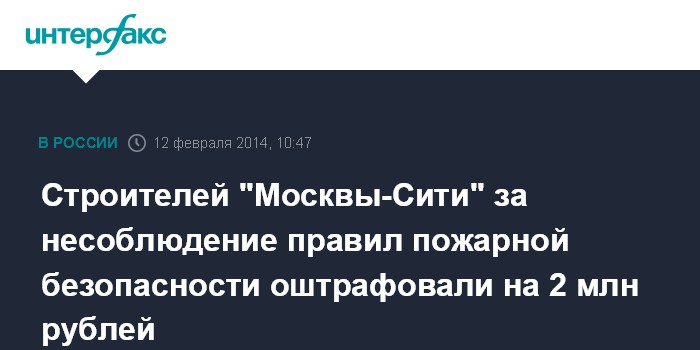 Строителей "Москвы-Сити" за несоблюдение правил пожарной безопасности оштрафовали на 2 млн рублей