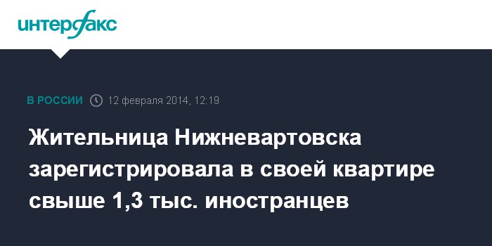 Ханты-Мансийск. 12 февраля. INTERFAX.RU - Сотрудники миграционной службы Нижневартовска направили в правоохранительные органы материалы для возбуждения уголовного дела в отношении местной жительницы, зарегистрировавшей в своей квартире более тысячи мигрантов.