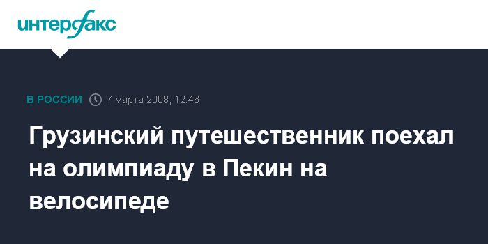 Тбилиси. 7 марта. INTERFAX.RU - Известный грузинский путешественник, 16-кратный рекордсмен Книги рекордов Гиннеса 69-летний Джумбер Лежава сегодня выехал на велосипеде из Тбилиси, чтобы попасть в Пекин к началу летней Олимпиады.