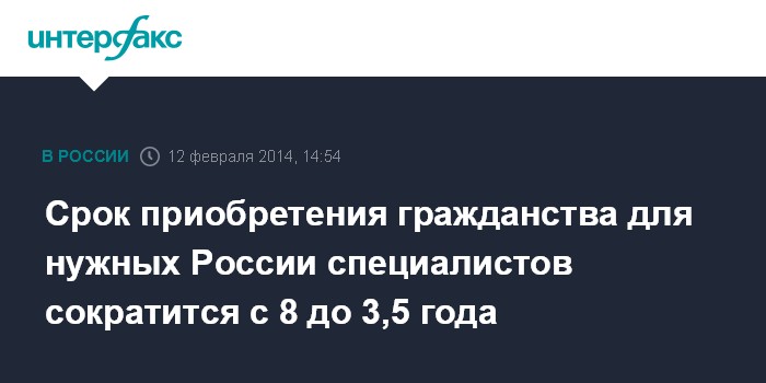 Срок приобретения гражданства для нужных России специалистов сократится с 8 до 3,5 года