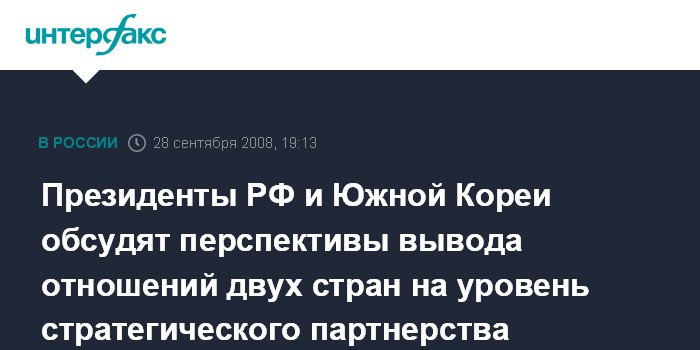 Президенты РФ и Южной Кореи обсудят перспективы вывода отношений двух стран на уровень стратегического партнерства