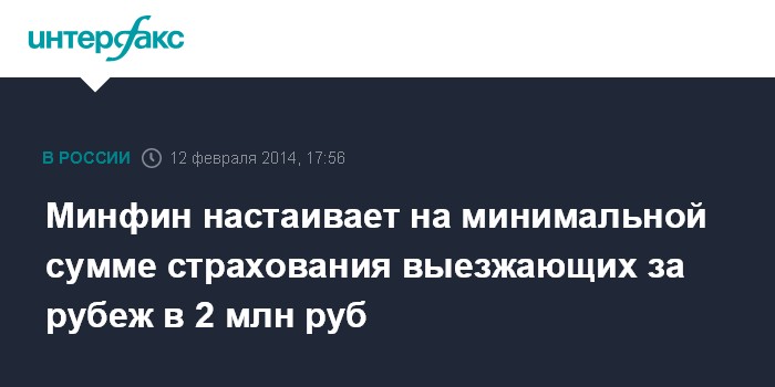 Минфин настаивает на минимальной сумме страхования выезжающих за рубеж в 2 млн руб
