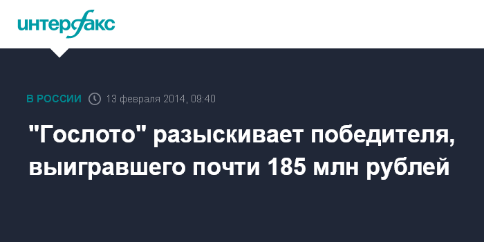 "Гослото" разыскивает победителя, выигравшего почти 185 млн рублей