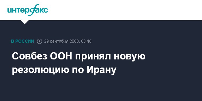 Москва. 29 сентября. INTERFAX.RU - Совет Безопасности ООН в субботу единогласно принял новую резолюцию по Ирану, требующую от этого государства подчиняться всем предписаниям МАГАТЭ и всем предыдущим резолюциям СБ ООН, но не вводящую новых санкций против Тегерана.