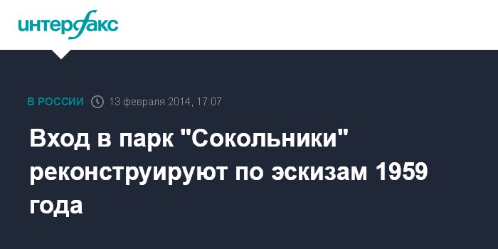 Вход в парк "Сокольники" реконструируют по эскизам 1959 года