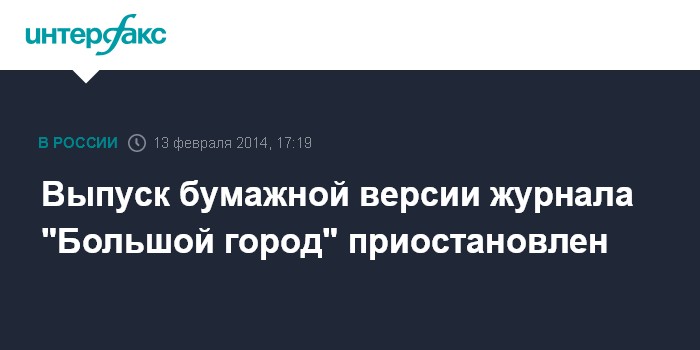 Выпуск бумажной версии журнала "Большой город" приостановлен