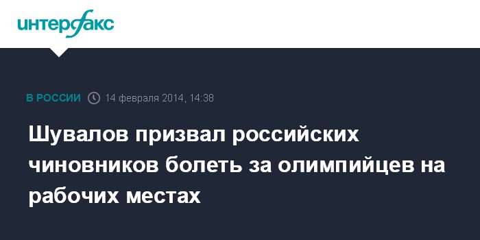 Шувалов призвал российских чиновников болеть за олимпийцев на рабочих местах