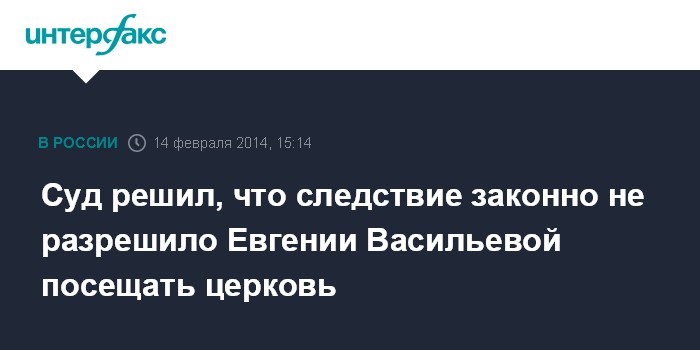 Суд решил, что следствие законно не разрешило Евгении Васильевой посещать церковь
