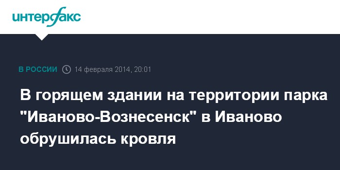 В горящем здании на территории парка "Иваново-Вознесенск" в Иваново обрушилась кровля