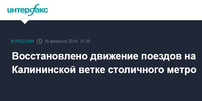 Москва. 16 февраля. INTERFAX.RU - Движение на Калининской линии московского метрополитена полностью восстановлено после аварии, произошедшей в воскресенье днем. "В 14:17 подано напряжение контактного рельса между станциями "Марксистская" и "Площадь Ильича". В настоящее время движение поездов входит в график", - сообщили "Интерфаксу" в пресс-службе метро.
