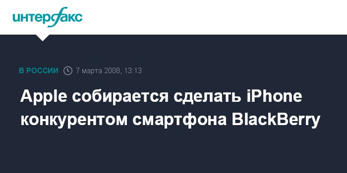 Нью-Йорк. 7 марта. INTERFAX.RU - Apple обнародовала план, согласно которому iPhone должен стать более привлекательным для корпоративных пользователей, и в итоге превратиться в серьезного конкурента смартфона BlackBerry, пишет The Wall Street Journal.