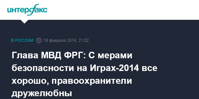 Глава МВД ФРГ: С мерами безопасности на Играх-2014 все хорошо, правоохранители дружелюбны