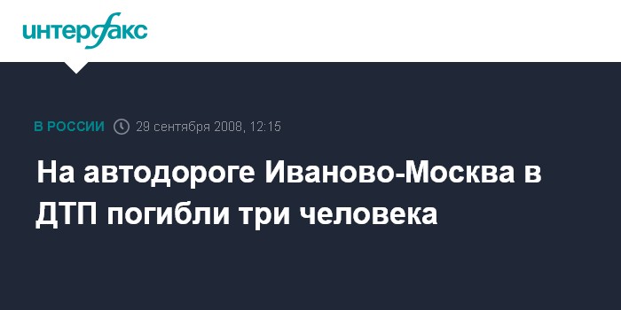 Москва. 29 сентября. INTERFAX.RU - В районе деревни Плясуниха Лежневского района Ивановской области, на автодороге "Волга-1" в ночь на понедельник произошло ДТП, в котором погибли три человека, еще трое получили тяжелые травмы, сообщили "Интерфаксу" в пресс-службе управления ГИЮДД облУВД.