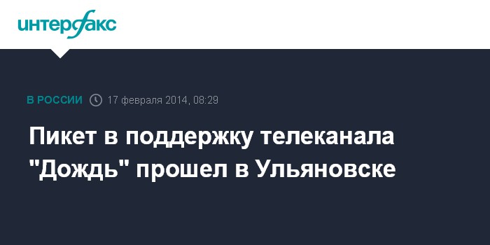 Москва. 17 февраля. INTERFAX.RU - В Ульяновске в воскресенье местное отделение ПАРНАСа провело акцию в поддержку телеканала "Дождь" и против цензуры СМИ.
