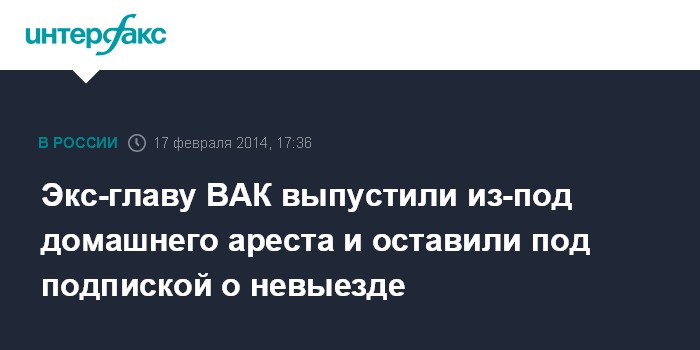 Экс-главу ВАК выпустили из-под домашнего ареста и оставили под подпиской о невыезде