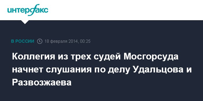 Коллегия из трех судей Мосгорсуда начнет слушания по делу Удальцова и Развозжаева