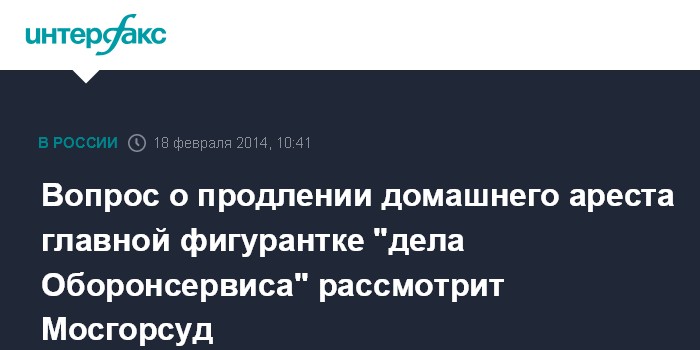Вопрос о продлении домашнего ареста главной фигурантке "дела Оборонсервиса" рассмотрит Мосгорсуд