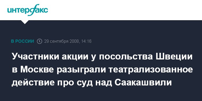 Участники акции у посольства Швеции в Москве разыграли театрализованное действие про суд над Саакашвили