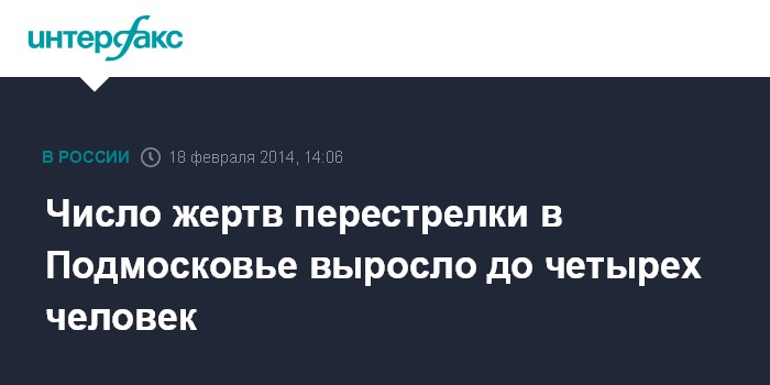 Москва. 18 февраля. INTERFAX.RU - Скончался четвертый пострадавший в ходе перестрелки в Московской области, где были ранее застрелены три человека, сообщил "Интерфаксу" источник в правоохранительных органах.