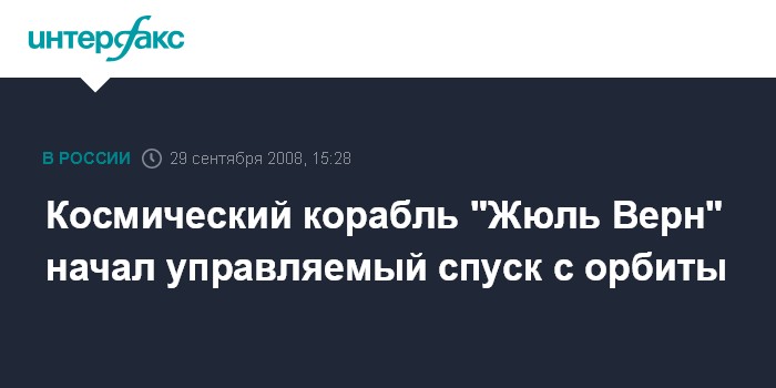 Москва. 29 сентября. INTERFAX.RU - Европейский центр управления полетами в Тулузе (Франция) выдал космическому кораблю "Жюль Верн" команду на включение двигателей для схода с земной орбиты.