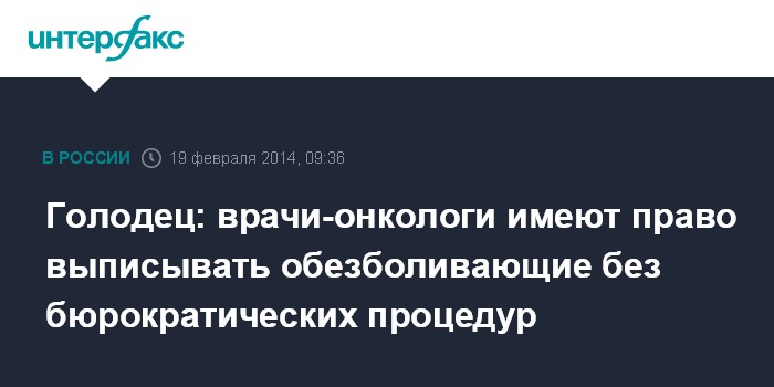 "Сегодня любой врач-онколог имеет полное право выписать без всяких бюрократических процедур, без лишних согласований обезболивающие препараты своим пациентам", - заявила Голодец.