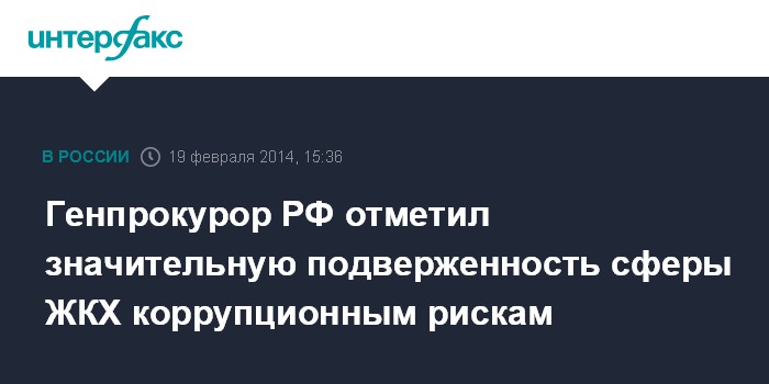 Генпрокурор РФ отметил значительную подверженность сферы ЖКХ коррупционным рискам