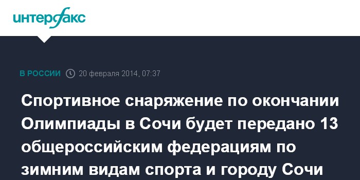 Спортивное снаряжение по окончании Олимпиады в Сочи будет передано 13 общероссийским федерациям по зимним видам спорта и городу Сочи
