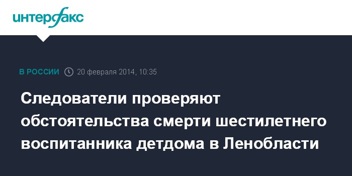 Санкт-Петербург. 20 февраля. INTERFAX.RU - СКР по Ленинградской области проводит проверку по факту смерти шестилетнего воспитанника Детского дома инвалидов, расположенного в Приозерске.