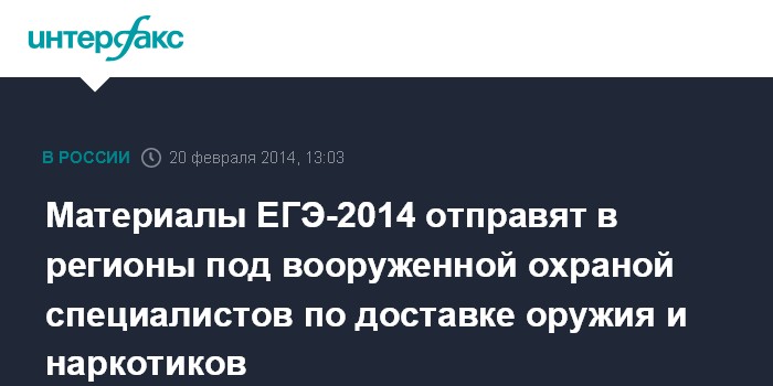 Материалы ЕГЭ-2014 отправят в регионы под вооруженной охраной специалистов по доставке оружия и наркотиков