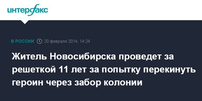 Житель Новосибирска проведет за решеткой 11 лет за попытку перекинуть героин через забор колонии