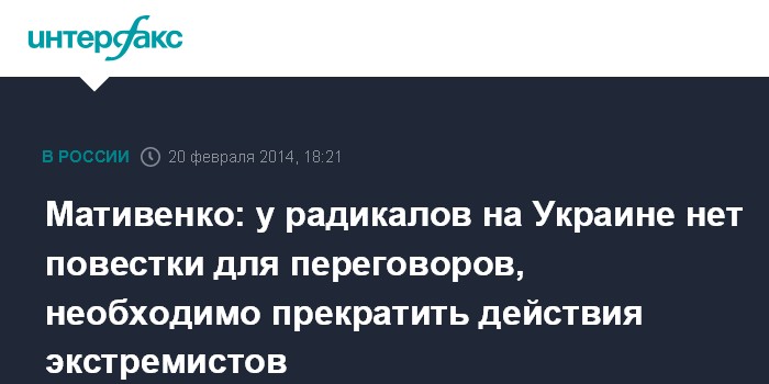 Мативенко: у радикалов на Украине нет повестки для переговоров, необходимо прекратить действия экстремистов