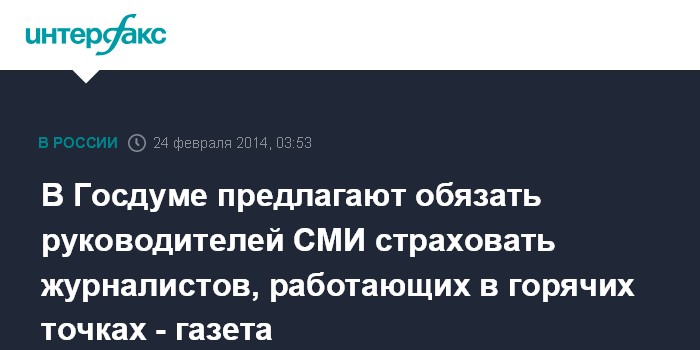 В Госдуме предлагают обязать руководителей СМИ страховать журналистов, работающих в горячих точках - газета