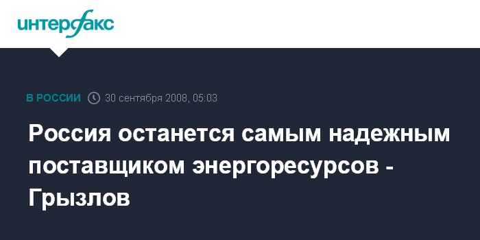Россия останется самым надежным поставщиком энергоресурсов - Грызлов