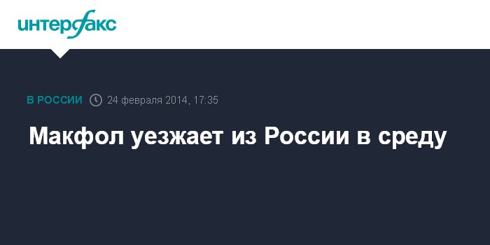 Москва. 24 февраля. INTERFAX.RU - Посол США в Москве Майкл Макфол сообщил, что покидает Россию в среду.