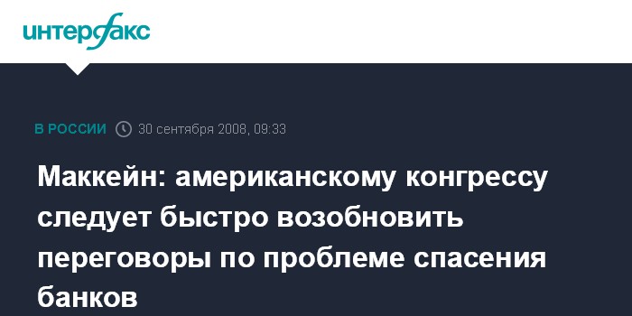 Маккейн: американскому конгрессу следует быстро возобновить переговоры по проблеме спасения банков