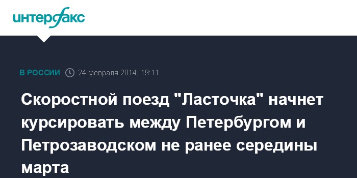 Петрозаводск. 24 февраля. INTERFAX.RU - Подвижной состав серии "Ласточка" будет передан на маршрут Санкт-Петербург - Петрозаводск Октябрьской железной дороги после окончания Паралимпийских игр в Сочи, которые завершатся в середине марта, сообщает пресс-служба правительства Карелии.