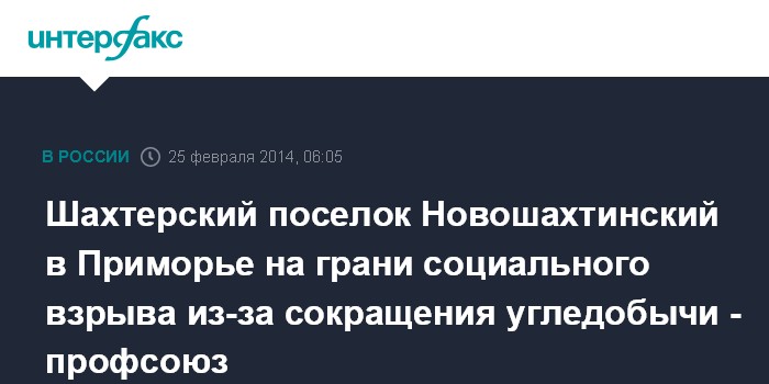 Владивосток. 25 февраля. ИНТЕРФАКС - ДАЛЬНИЙ ВОСТОК - Работники разрезоуправления (РУ) "Новошахтинское" в Приморском крае опасаются массовых сокращений из-за резкого снижения плана по угледобыче, градообразующее предприятие, как и весь шахтерский поселок Новошахтинский на грани социального взрыва, сообщил агентству "Интерфакс - Дальний Восток" председатель профсоюза РУ Евгений Козаков.