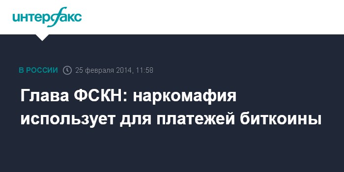 Москва. 25 февраля. INTERFAX.RU - Виртуальная валюта bitcoin среди прочих платежных систем используется наркомафией для осуществления платежей при реализации наркотиков, заявил журналистам глава Федеральной службы по контролю за оборотом наркотиков Виктор Иванов.